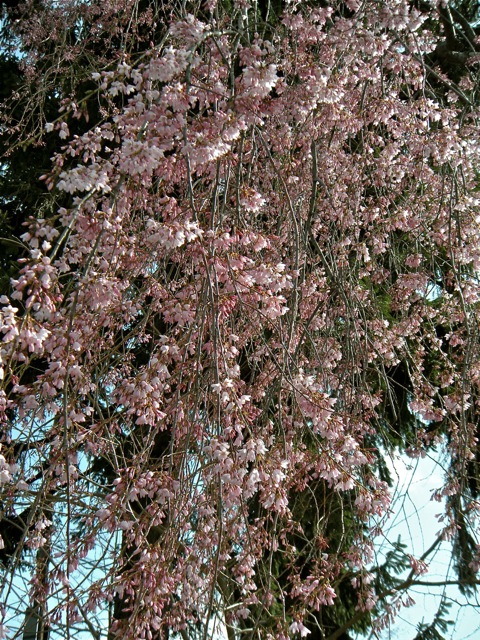 We have a weeping cherry tree in the front yard that usually blooms around the first three days of May every year.