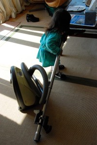 To top it all off, here is a photo of little Josie, lending a hand to vacuum the floor at the cottage the day that we left. Priceless!