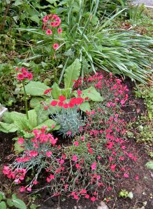 So, today, because it’s been drizzly and grey, perfect weather for planting, I’m going to find a good place that is part shade for the two Japanese primroses and the perennial dianthus that will surround them in the front garden. And also plant the five flats of morning glories that go in every year in front of the barn which climb the strings to the second floor deck where their color illuminates our mornings in the fall (see “one day at a time“.)