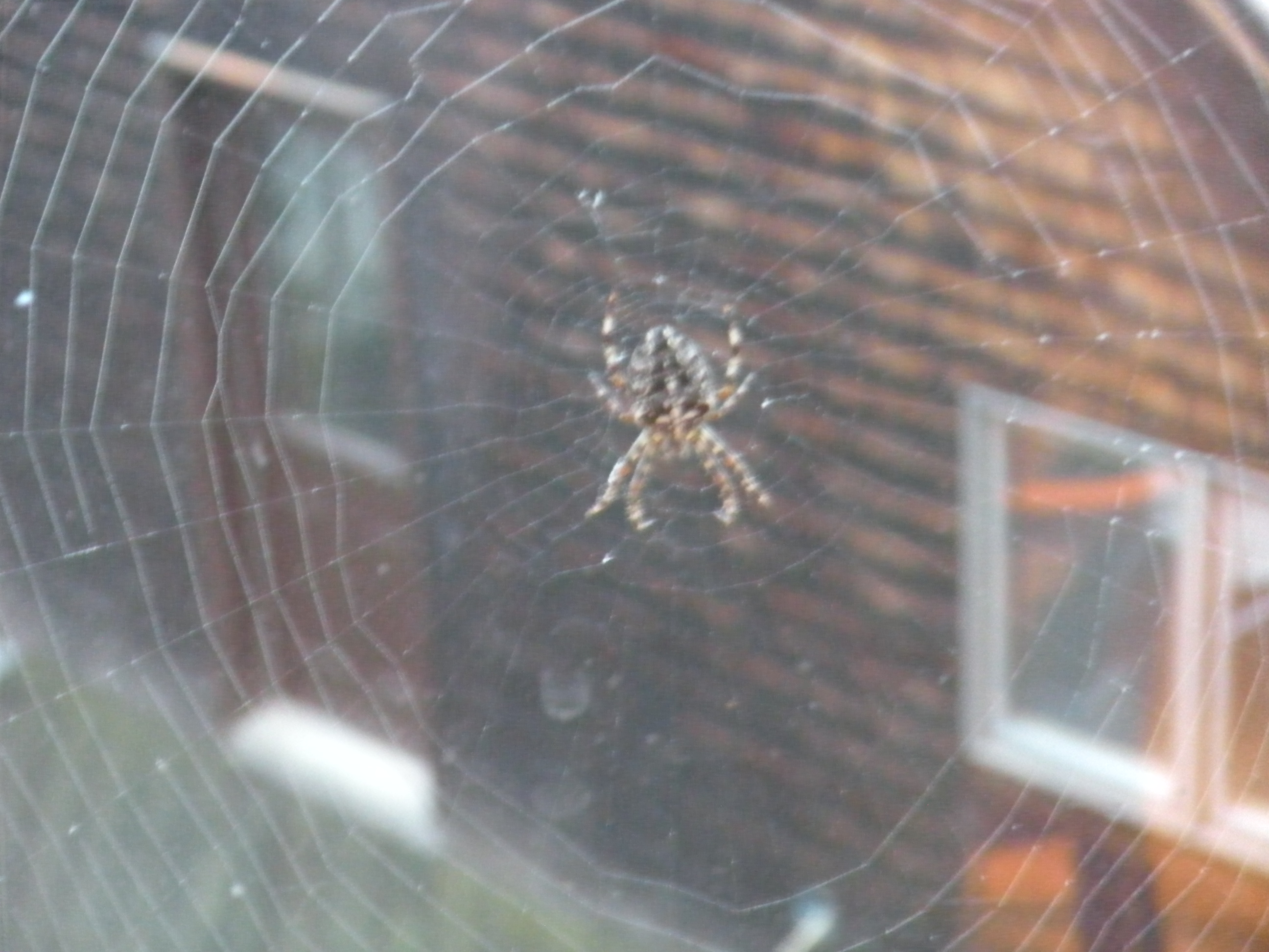 Last week, G. pointed out a spider web that could be seen outside our kitchen window as he was making coffee in the morning. I was reading my email and answered absently. That evening, as I was measuring out the coffee for after dinner, I glanced out the window and was astonished to see a perfectly symmetrical web with a queen spider in the center putting on the finishing touches.