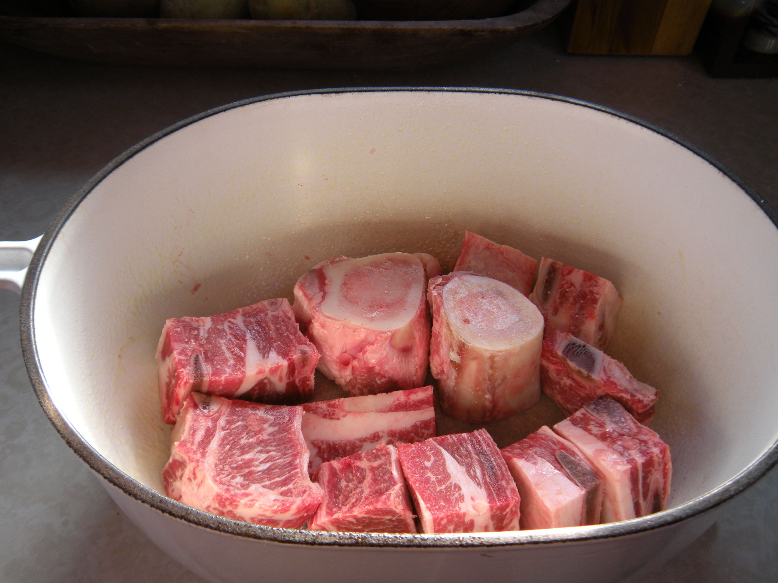 I’ve never tried to make it but yesterday at our local Vietnamese grocery store, I picked up a pack of beef short ribs to add to the marrow bones I found at the butcher’s across the street from the frame shop I visited (that’s another story.)