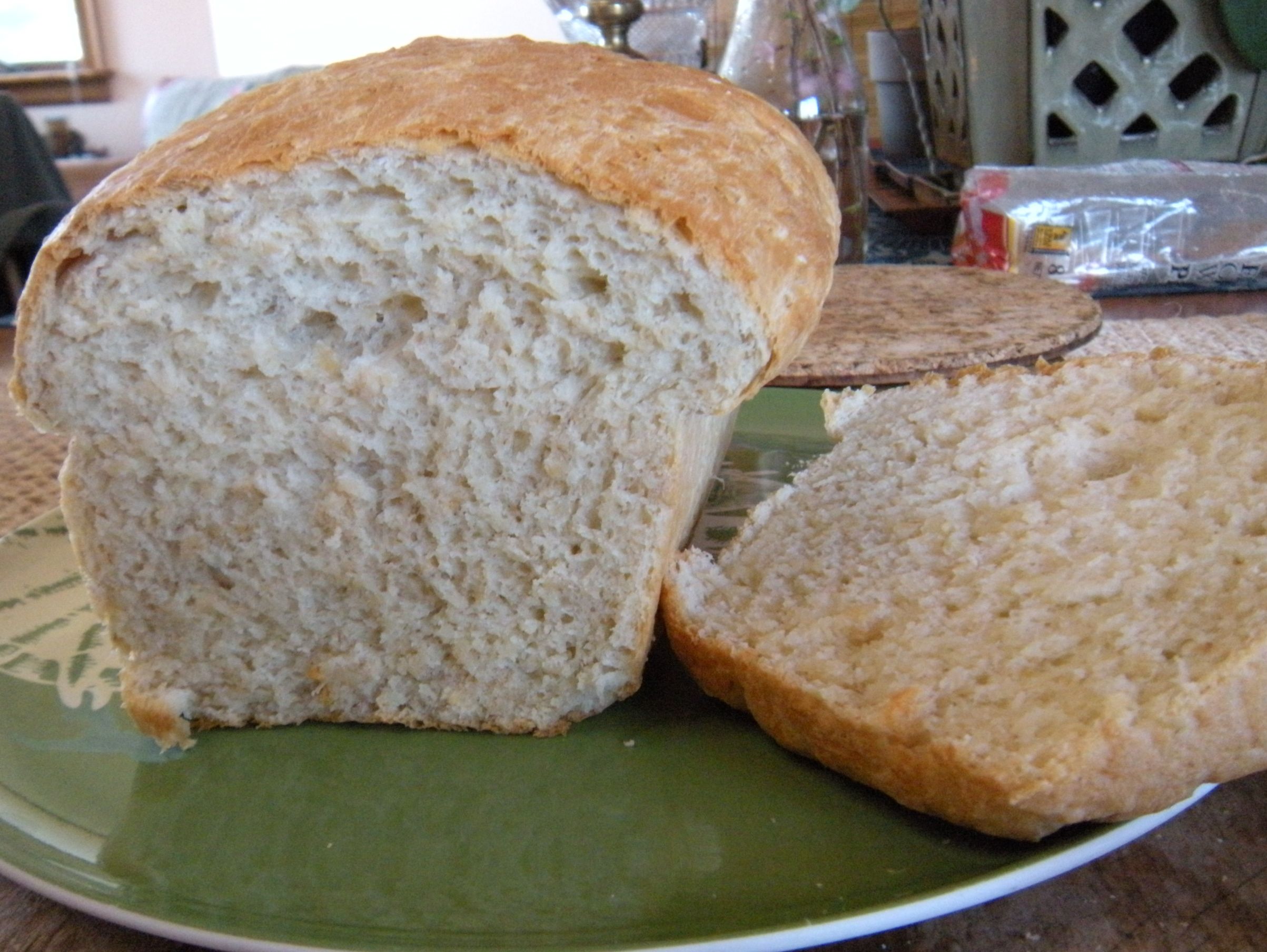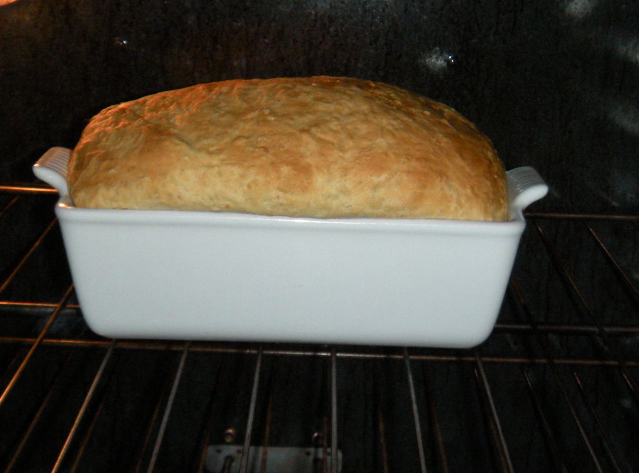 If you want to fall in love with your kitchen, your house and have everyone in your family on their knees, try making this bread! It only takes about three and a half hours to make from start to finish, there’s very little kneading involved–in fact, I think that heavy kneading would just make it tougher. So this morning, around 9 a.m. I started the dough for my second loaf.