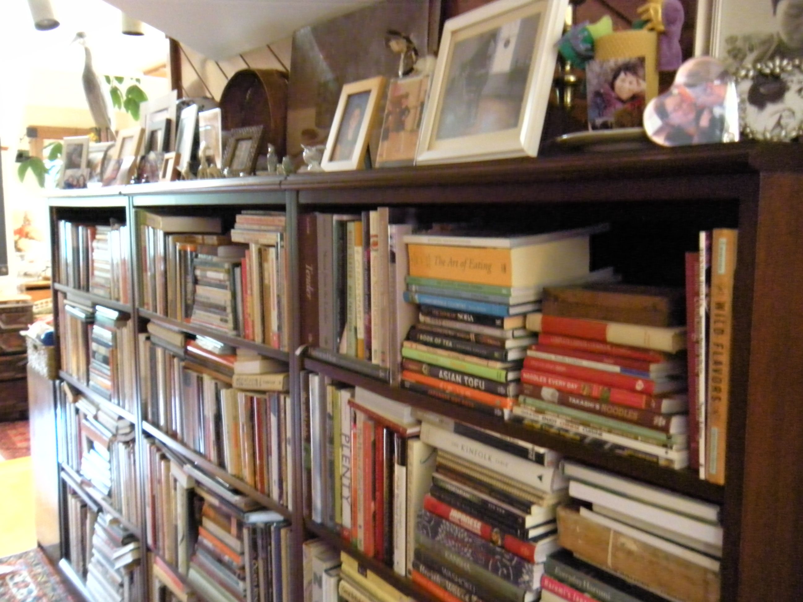 On a roll, I sorted out the bookstand that holds current magazines (Bon Appetit) and books “Bringing Nature Home,” a gorgeous flower/decorating book and one of my favorite books to derive housecleaning inspiration from, “Japanese Country Living.”