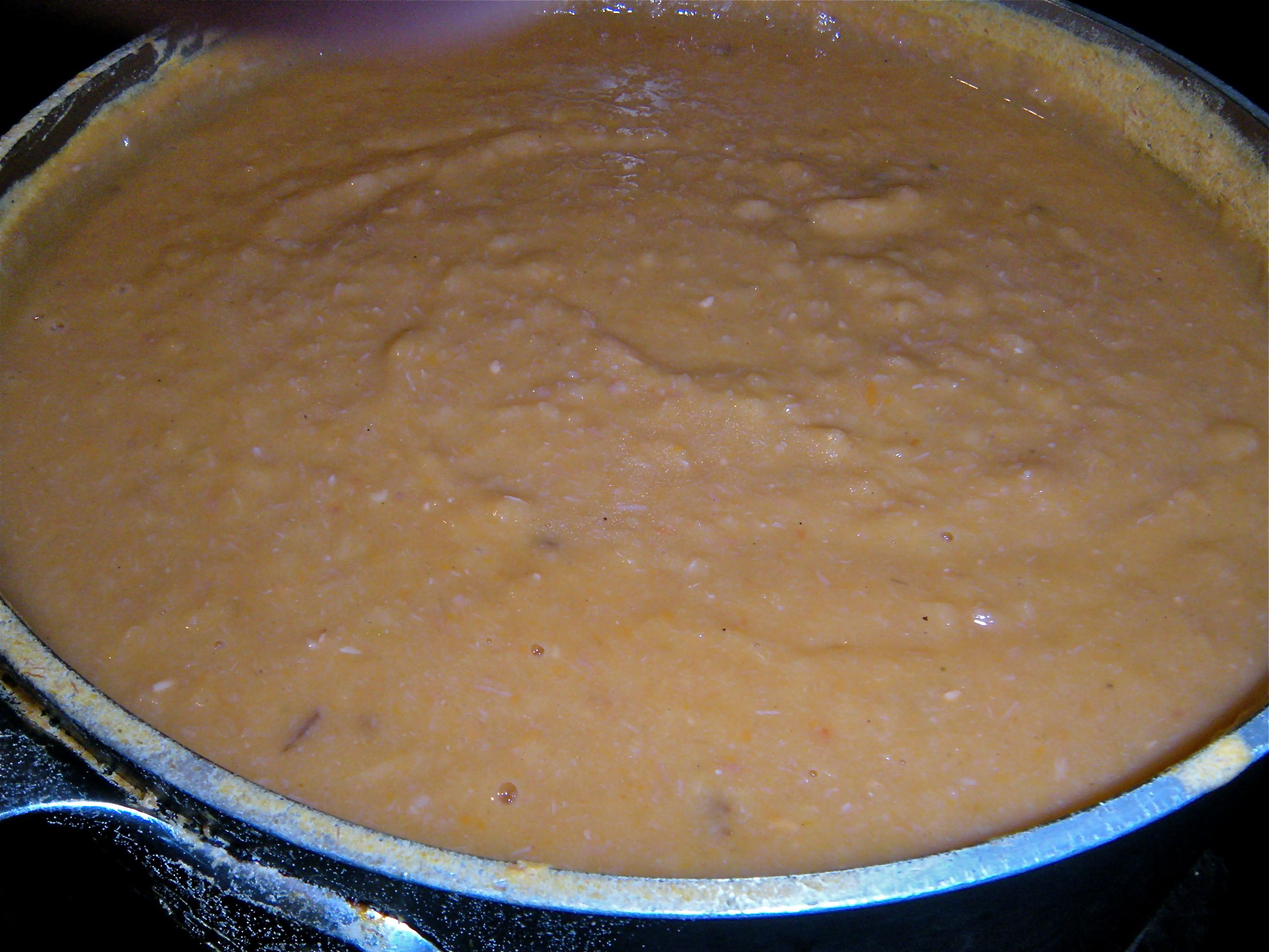 Cook low on simmer for a couple of hours or so; add more broth/water as needed (I stored the soup in the fridge overnight and then started it simmering again the following day, adding spring water to the soup)