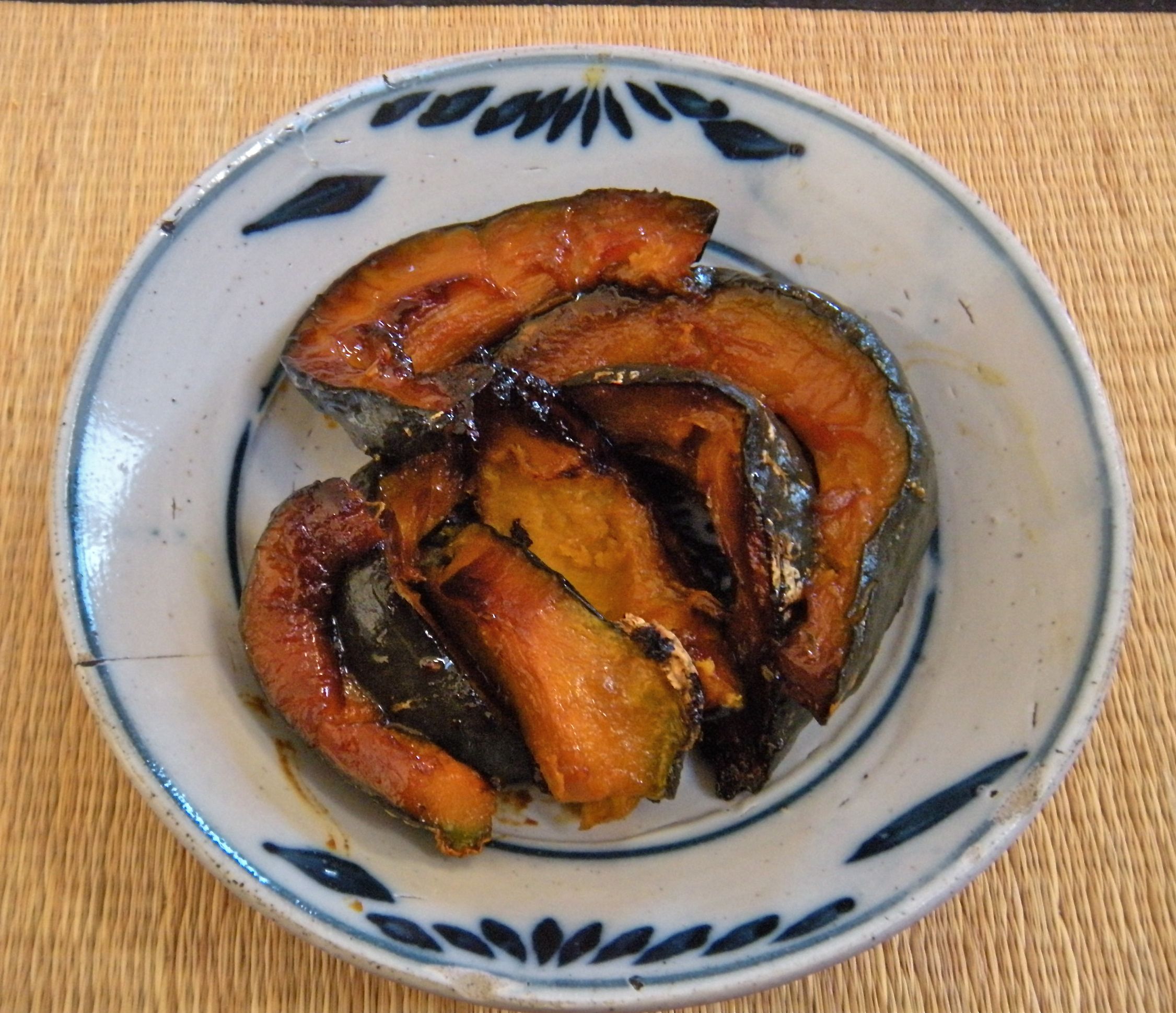 Have you ever cooked a kabocha squash? Maybe not. They’re not all that commonly found in the grocery store. You’ll come across it in Asian markets and also health food stores. Its origin is Japanese and it’s not altogether evident when you bring home this compact squash what to do with it exactly. It has a hard texture to the dark green striated skin. I’ve had it before in Japanese restaurants and it tastes like a squash but its flesh tastes more like a hearty sweet potato.