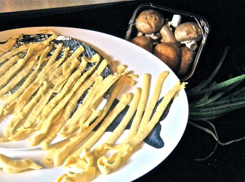 homemade pappardalle noodles with mushrooms and scallions for dinner tonight