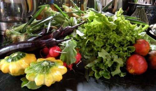 I’ve debated about joining a CSA for the growing season and this year, I decided as usual to take my chances going to farm stands for vegetables and fresh corn when it’s in season. Berberian’s Farm is about 20 minutes drive from my house and today, I was especially impressed with the produce – locally grown at the farm and picked at the peak of perfection – small beautiful eggplants, rosy radishes, patty pan squash, golden beets and of course ears of their wonderfully sweet butter and sugar corn. (They also have Silver Queen white corn later in August which is even sweeter and more succulent than the B&S they have now.)