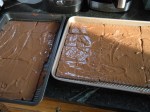 - Laid out the chocolate graham crackers on to two baking sheets, cutting some of them to fit the entire sheets.