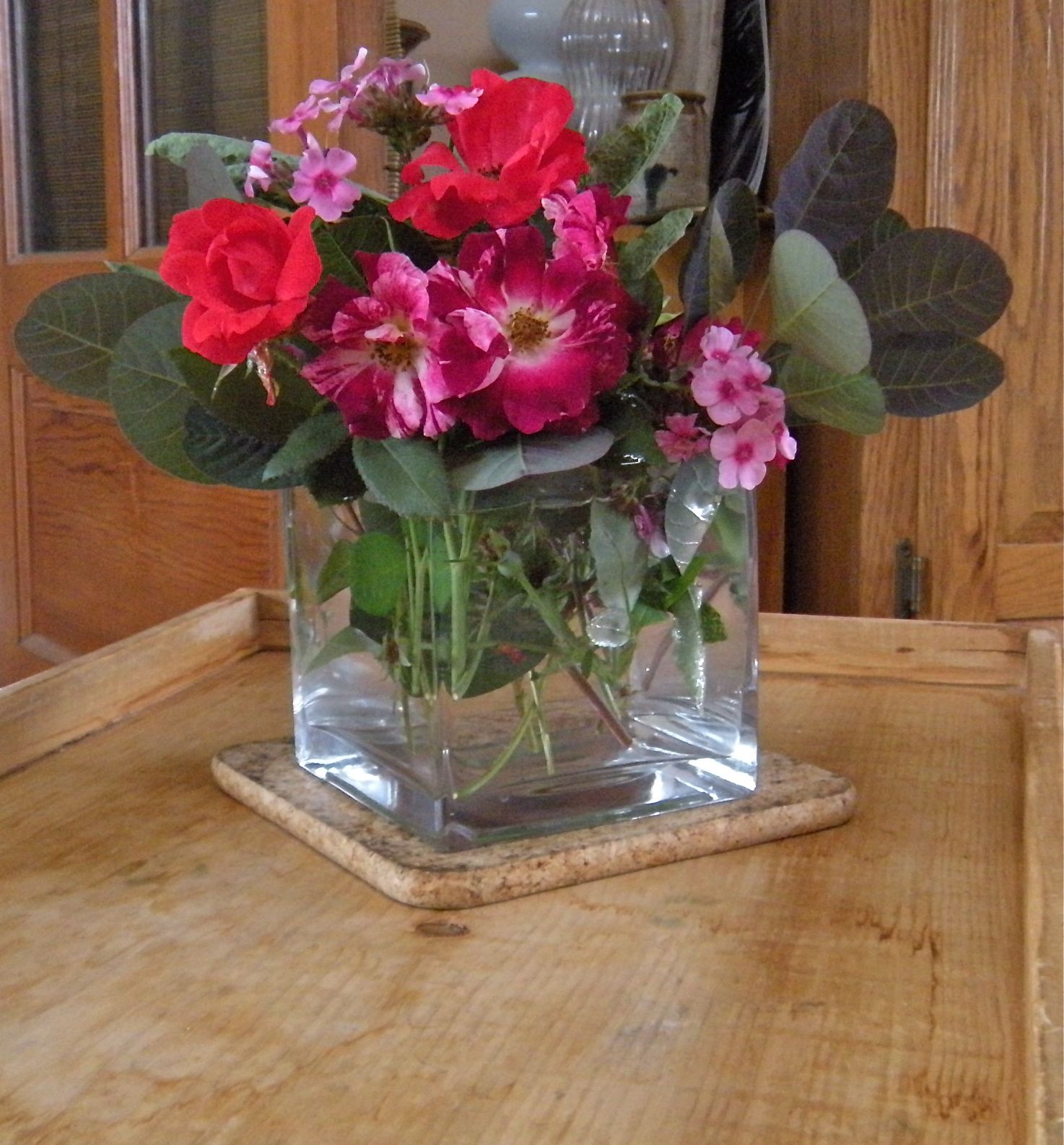 The garden is the better for it. . . although I noticed that the weeds have benefited from the rain as much as the flowering shrubs and bushes. After I put the laundry in this morning, I took my garden shears outside and looked around to see what I could find for a bouquet to grace our kitchen table.