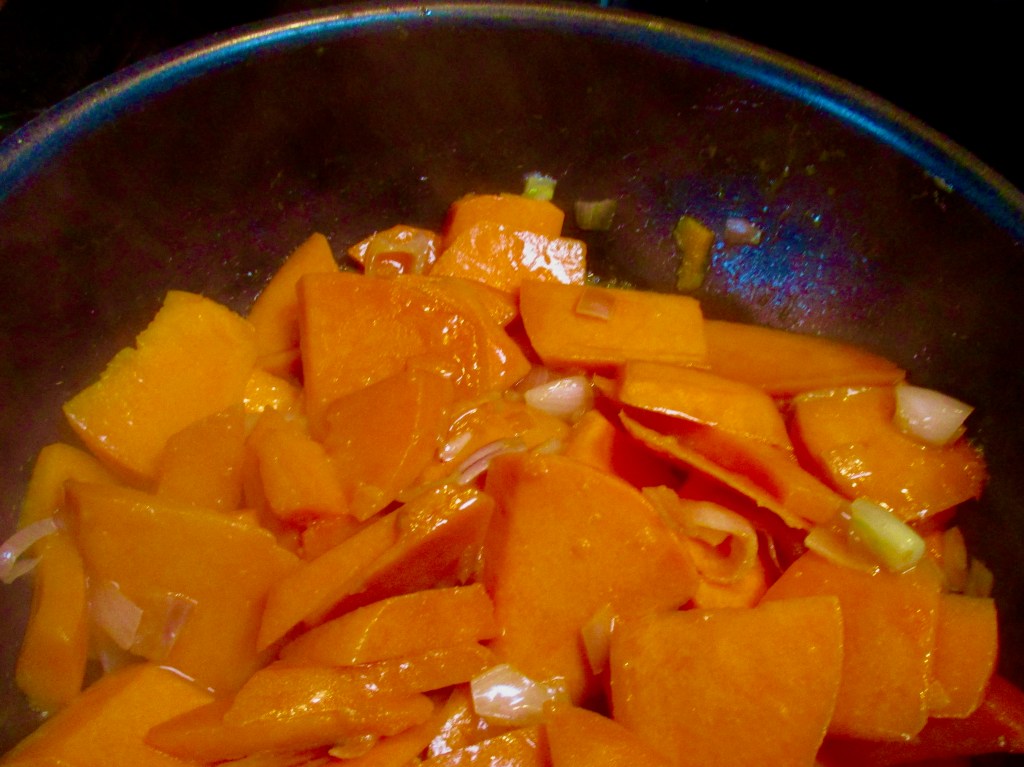 During the Winter months, we have soup almost every day for lunch. Today, I melted some butter, chopped up two shallots and sliced a peeled seeded butternut squash in small pieces. After it cooked a bit, I added a glug of sugar-free Vermont maple syrup and some chicken broth. It’s simmering on the stove now. When it’s soft, I’ll let it cool and then use an immersion blender to puree the soup. If it needs thickening, I let the puree simmer until desired consistency. Then, I add some light cream at the end. It smells divine!