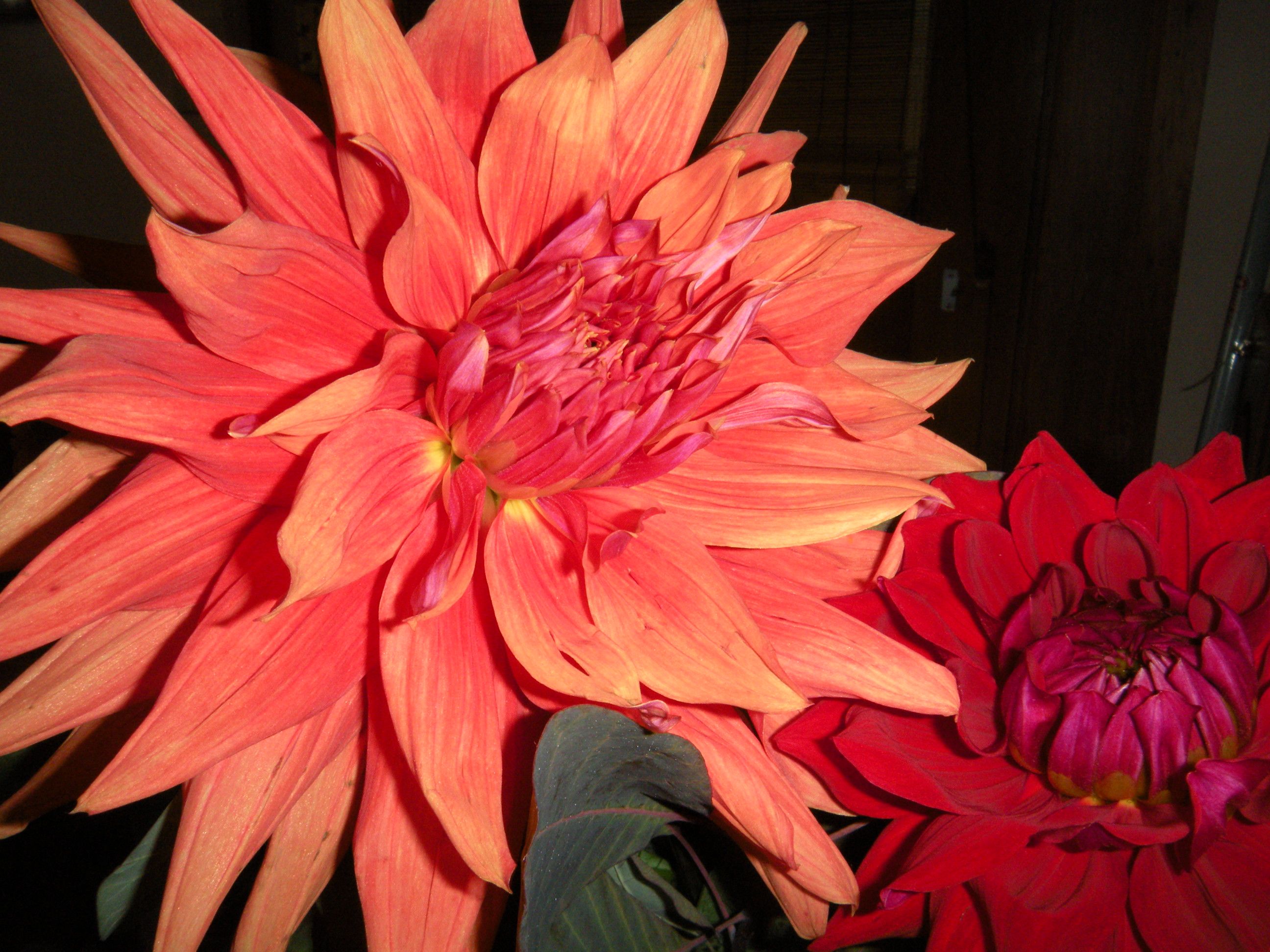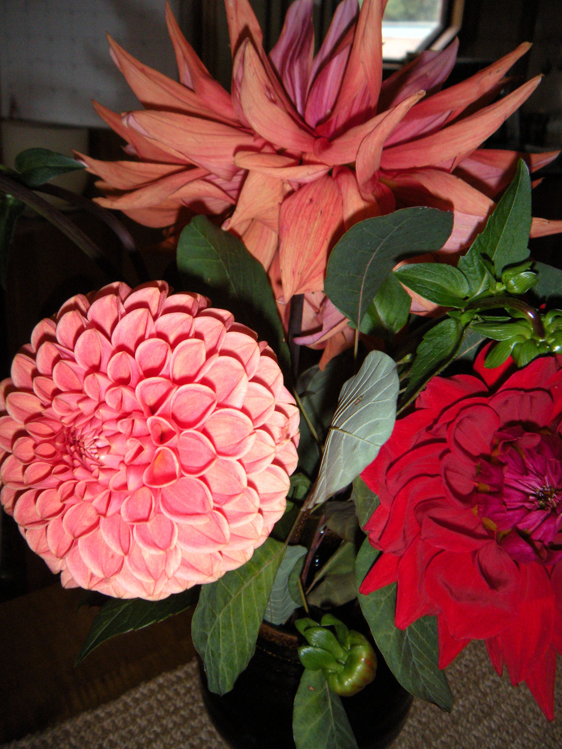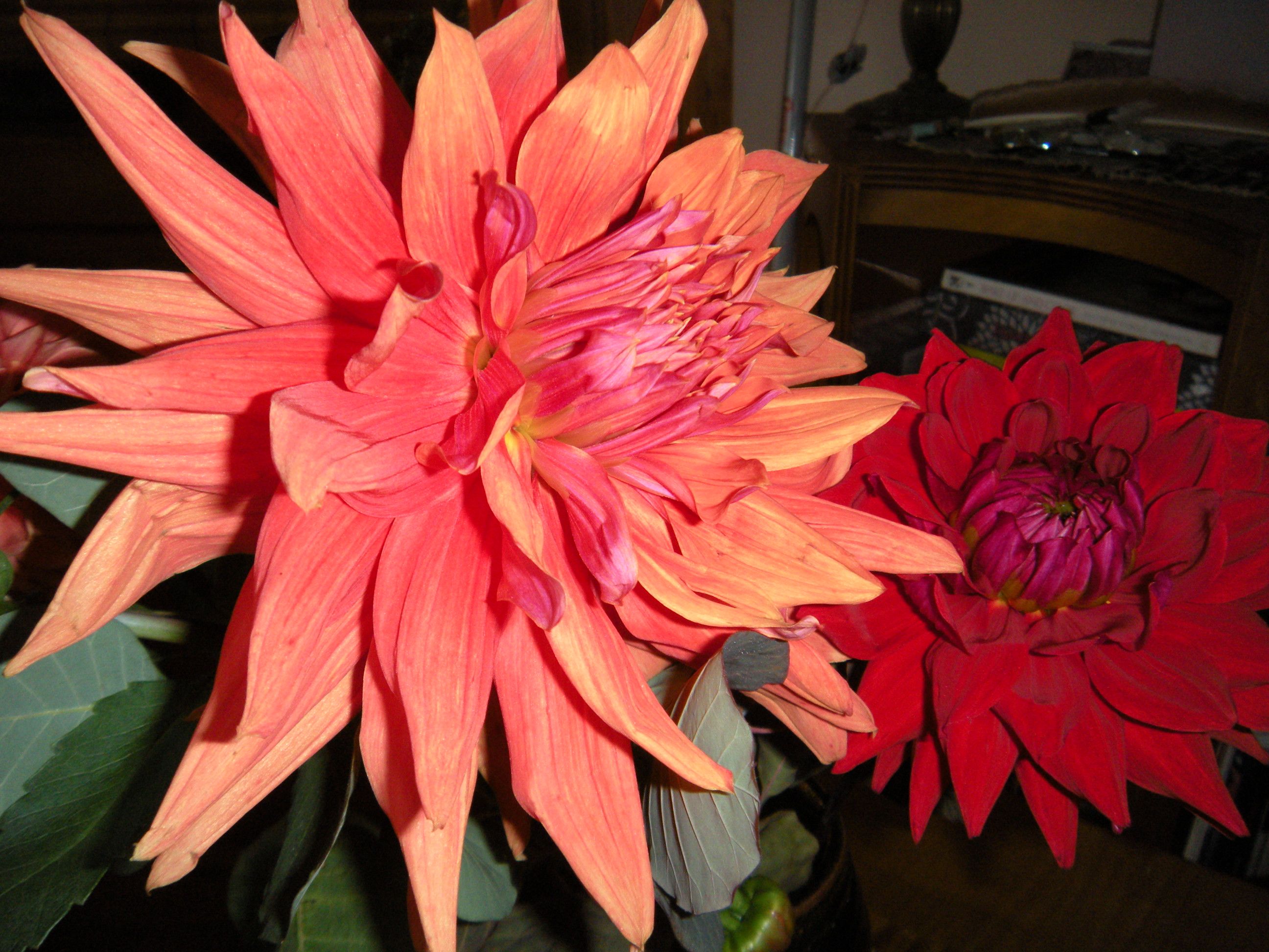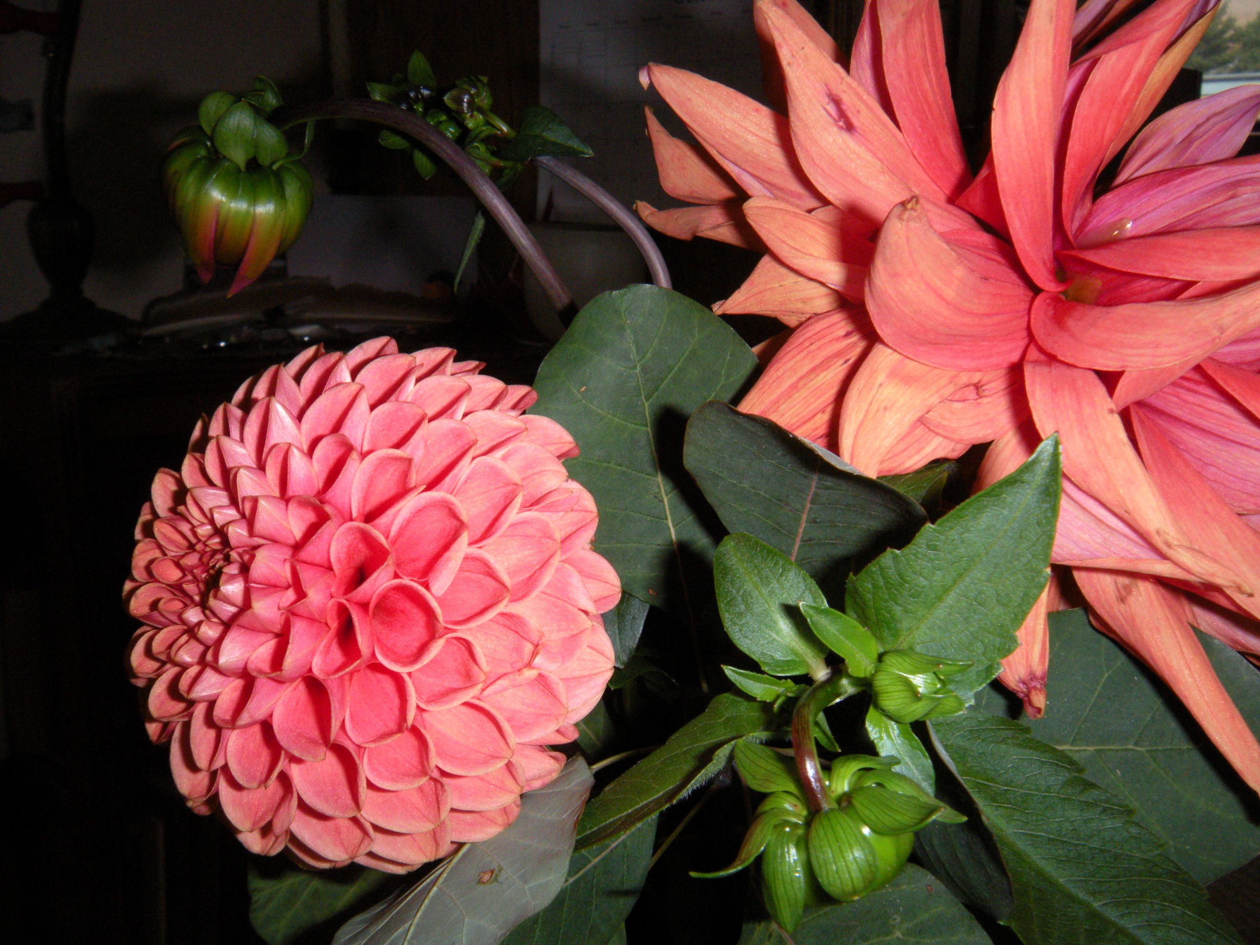 dahlias and gerbera with knives on the old formica countertop . . .