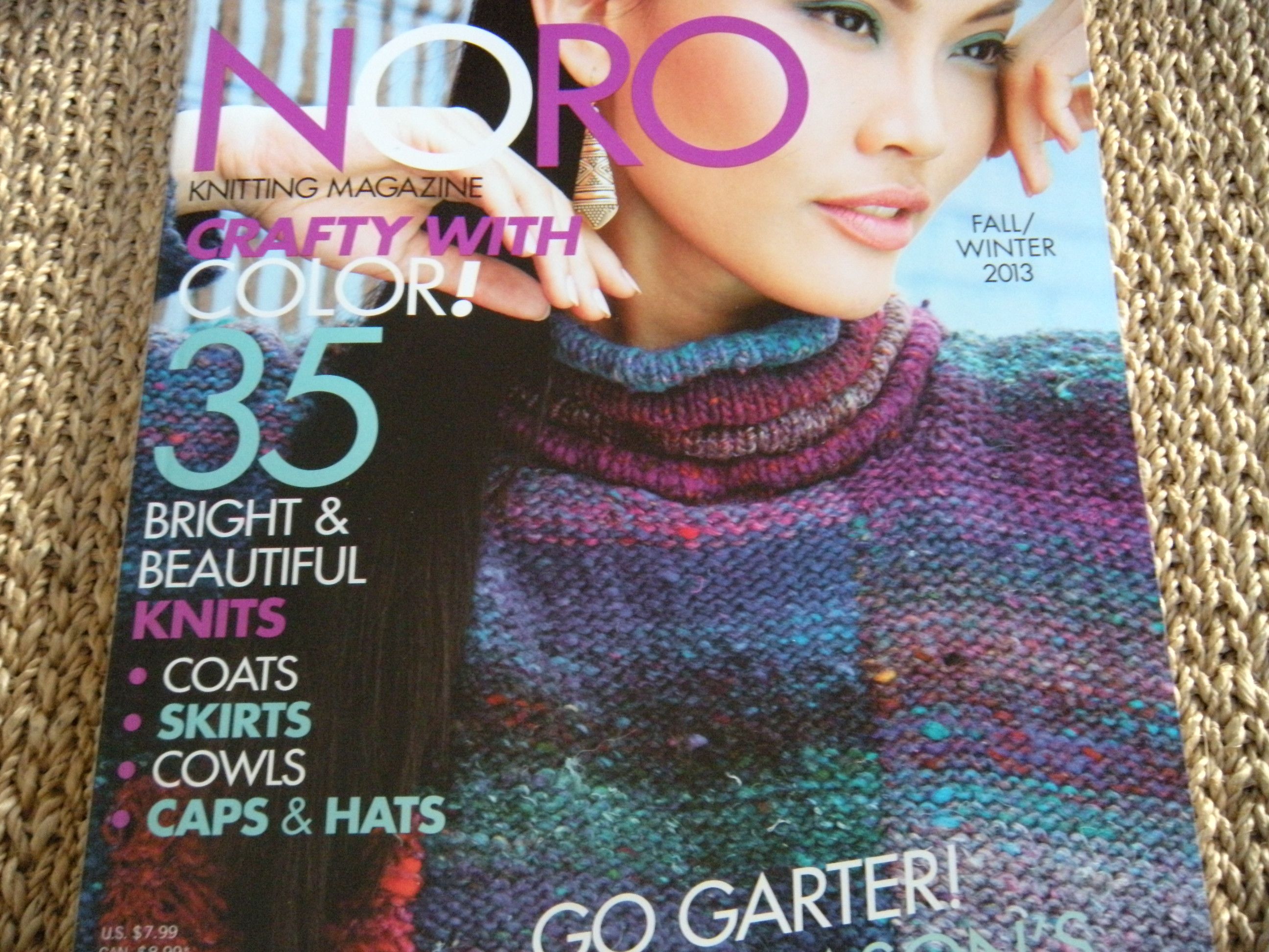 On the way home, as I was thirsty from the saltiness of my lunch, I decided to swing by Barnes and Noble to have an iced tea and look at their yarn books, not having found anything earlier in Northampton. The book section didn’t yield anything, but then, my eye fell on a magazine by Noro, the manufacturer of the yarn I had just bought with a patchwork sweater on the cover made out of the same exact colorway of the new Noro yarn that was sitting in my car.Yarn 2